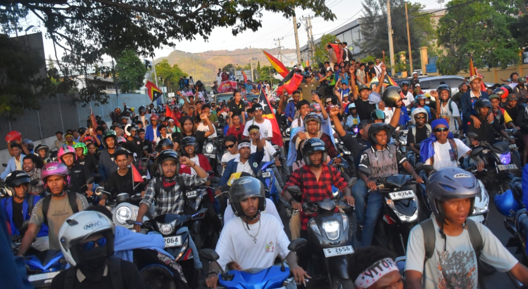 “Ami la’os perturba maibรฉ responsabilidade seguransa PNTL mak bele asegura, atu halo avaliasaun ba violensia nafatin PNTL mak avalia, entaun kestaun seguransa PNTL halo intervensaun tanba PNTL indentifika estudante balun aproveita marsa popular EUTL hodi dada bandeira Papua no bandeira Palestina, iha atividade marsa EUTL nian” Dehan Diretor DNII Gastรฃo Piedade ba estudante sira iha resintu Kuartel Jeral PNTL nian oin, Quarta-Feira, (01/10/2025)