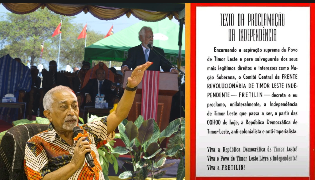Se mak hakerek textu proklamasaun independénsia ? Alkatiri hatan, “ha’u duni mak hakerek,” textu proklamasaun independénsia iha tinan 1975, “orseik, ha’u ko’alia hotu ona buat sira ne’e, bandeira mai hosi ha’u-nia uma”. Hatete, Eis Primeiru Ministru Marí Alkatiri iha Palásiu Governu Díli, 28/11/2025.