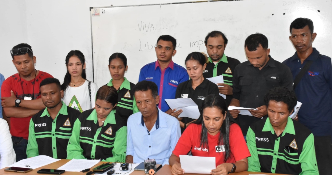 “Ami husi AJTL sei foti asaun legál hasoru ema sira ne’ebé komete agresaun fiziku hasoru jornalista sira tuir Lei Komunikasaun Sosiál, Artigu 4”.Dehan Prezidente AJTL Zeovonia Viera, liu husi Konferénsia Imprensa iha salaun AJTL Fatuhada, Quarta-Feira, (22/10/2025)